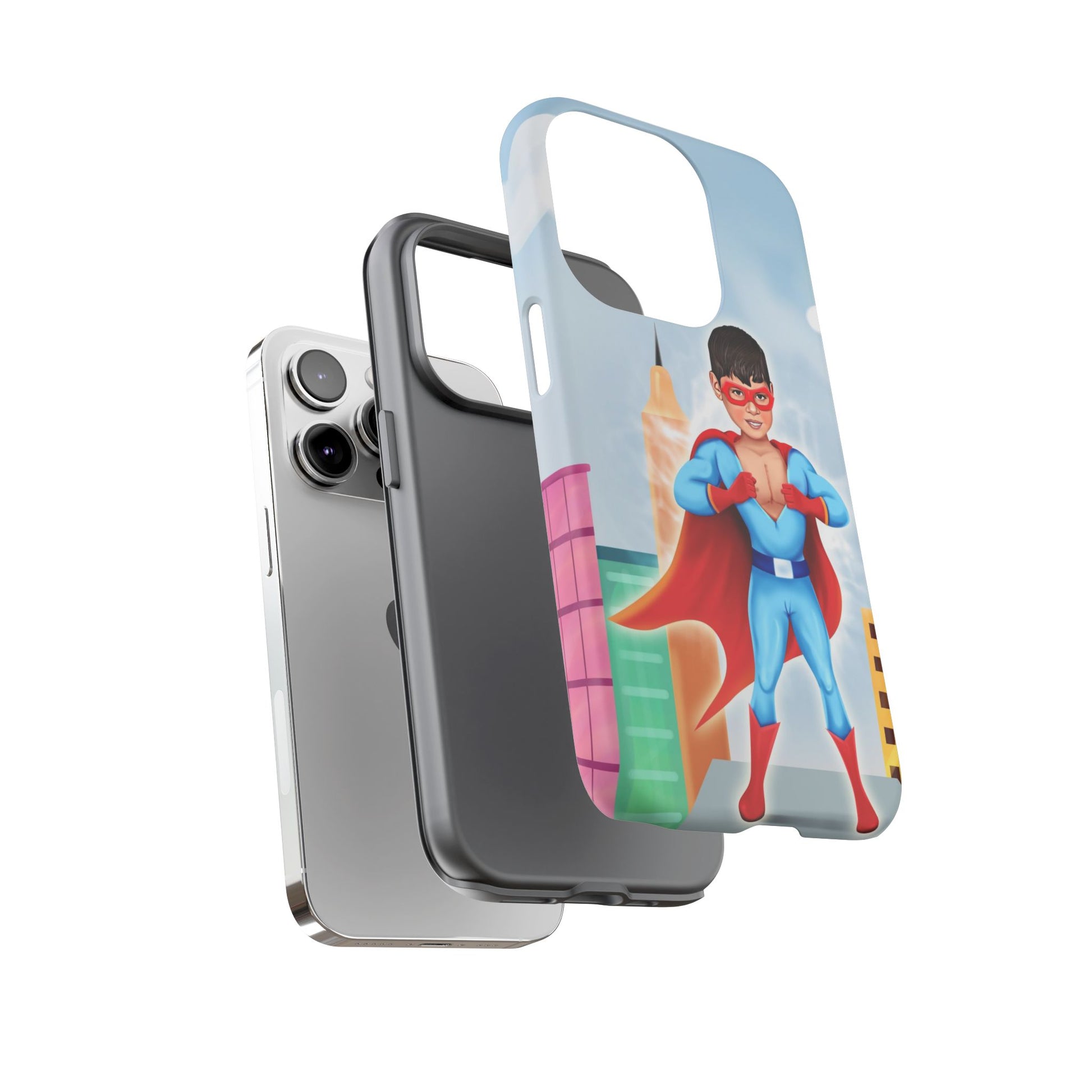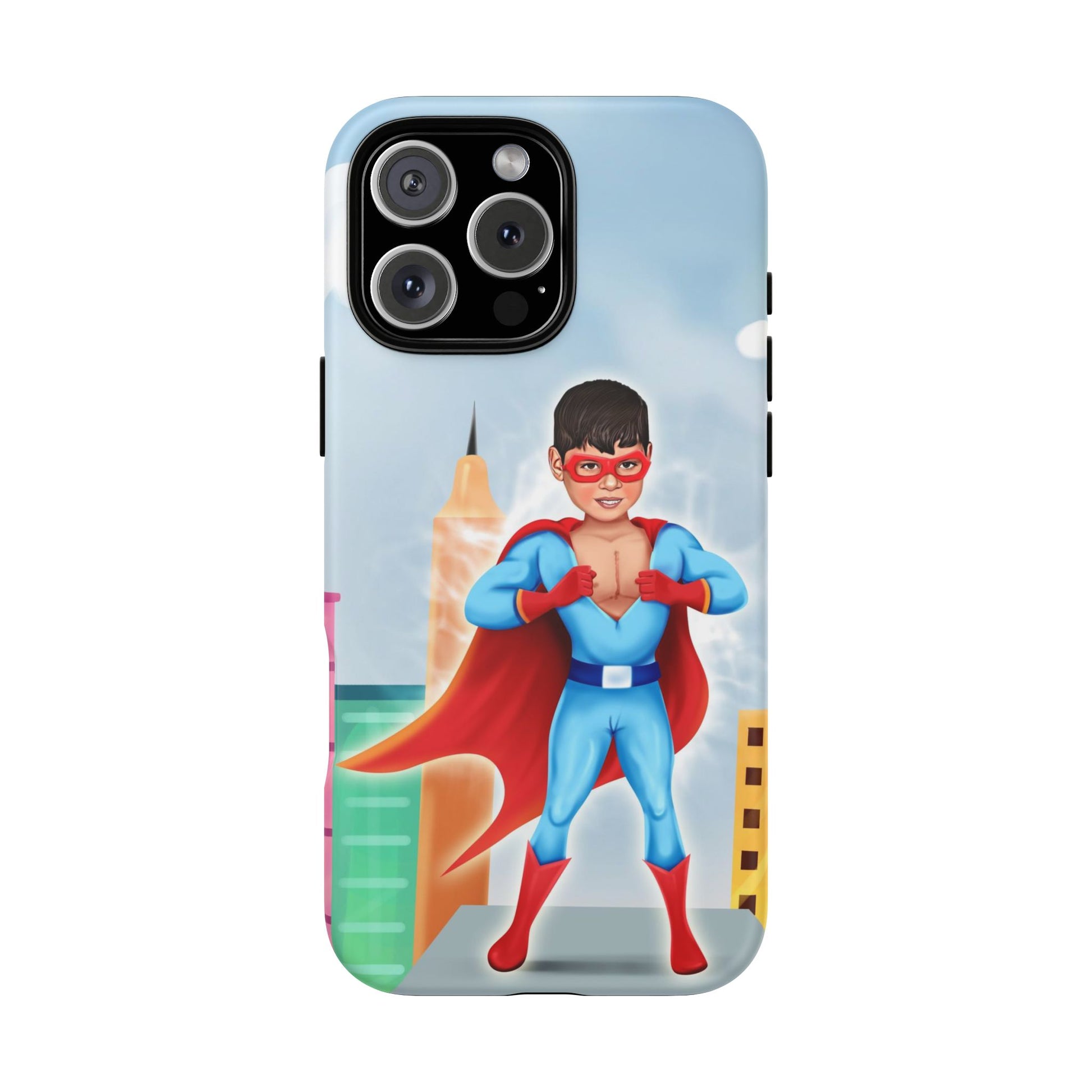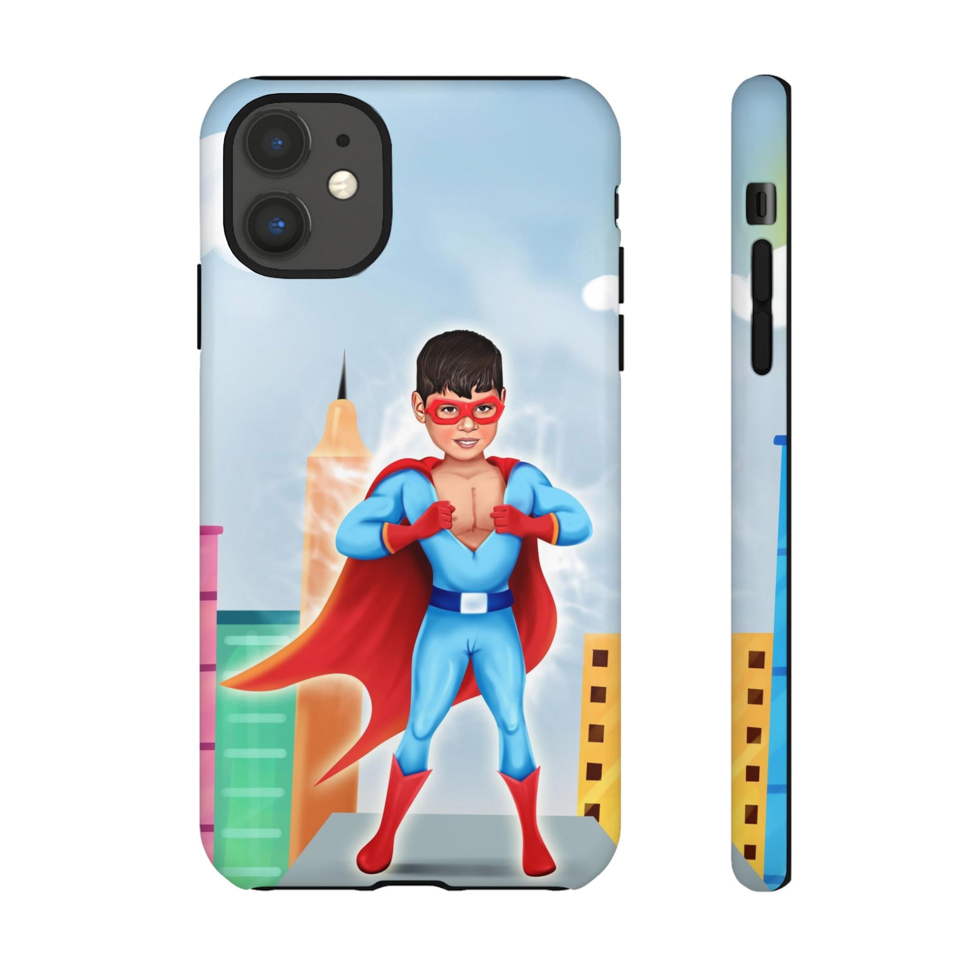 Introducing our superhero-themed phone case, designed to protect your device while adding a splash of fun and personality. This durable case brings a sense of adventure and imagination, perfect for individuals who appreciate unique, artistic designs. It's especially relevant for kids and parents looking for vibrant protective gear, making it an excellent gift for birthdays, holidays, or any celebration that calls for a touch of joy. Whether your child is a superhero fan or simply loves colorful designs, this case will keep their phone safe while sparking their creativity.