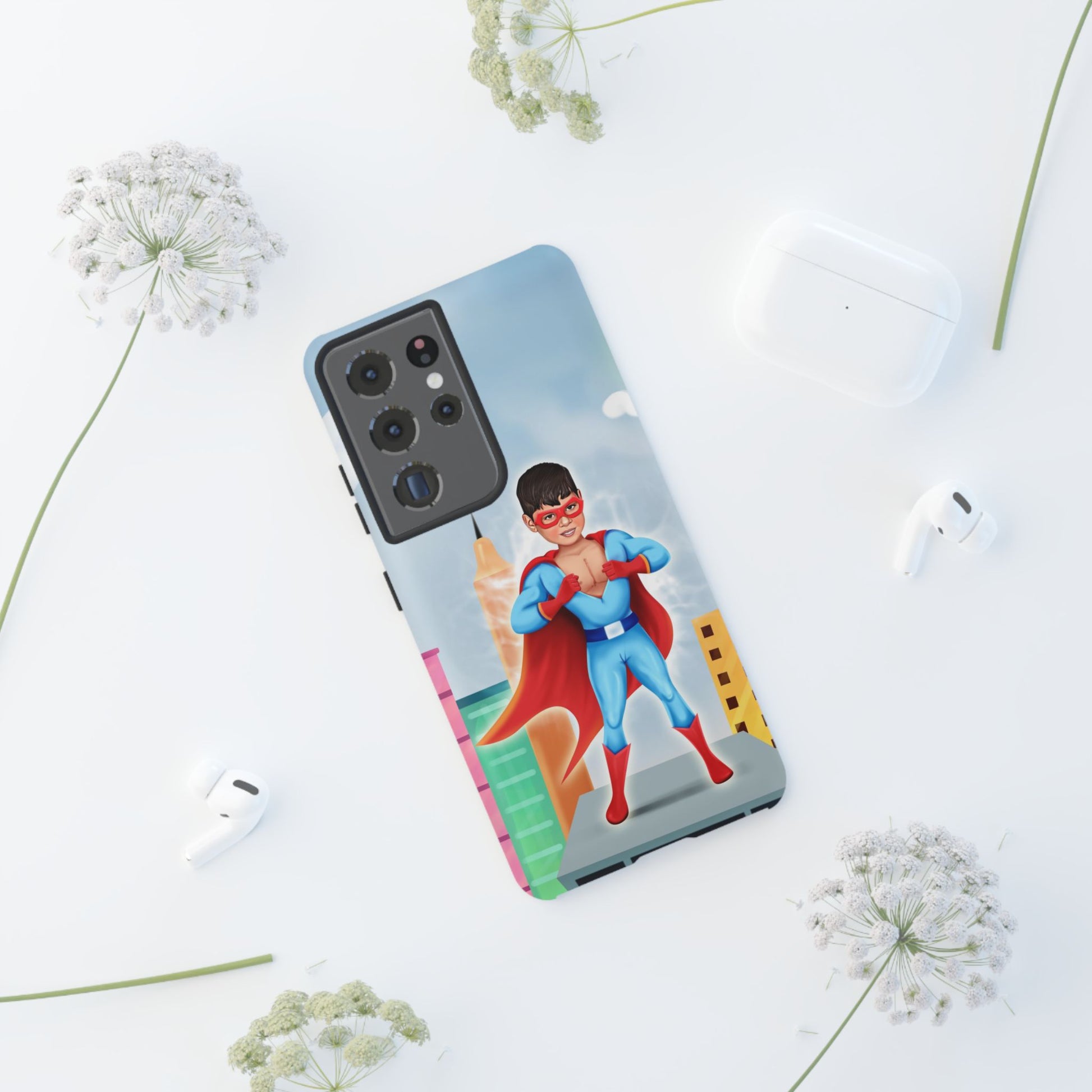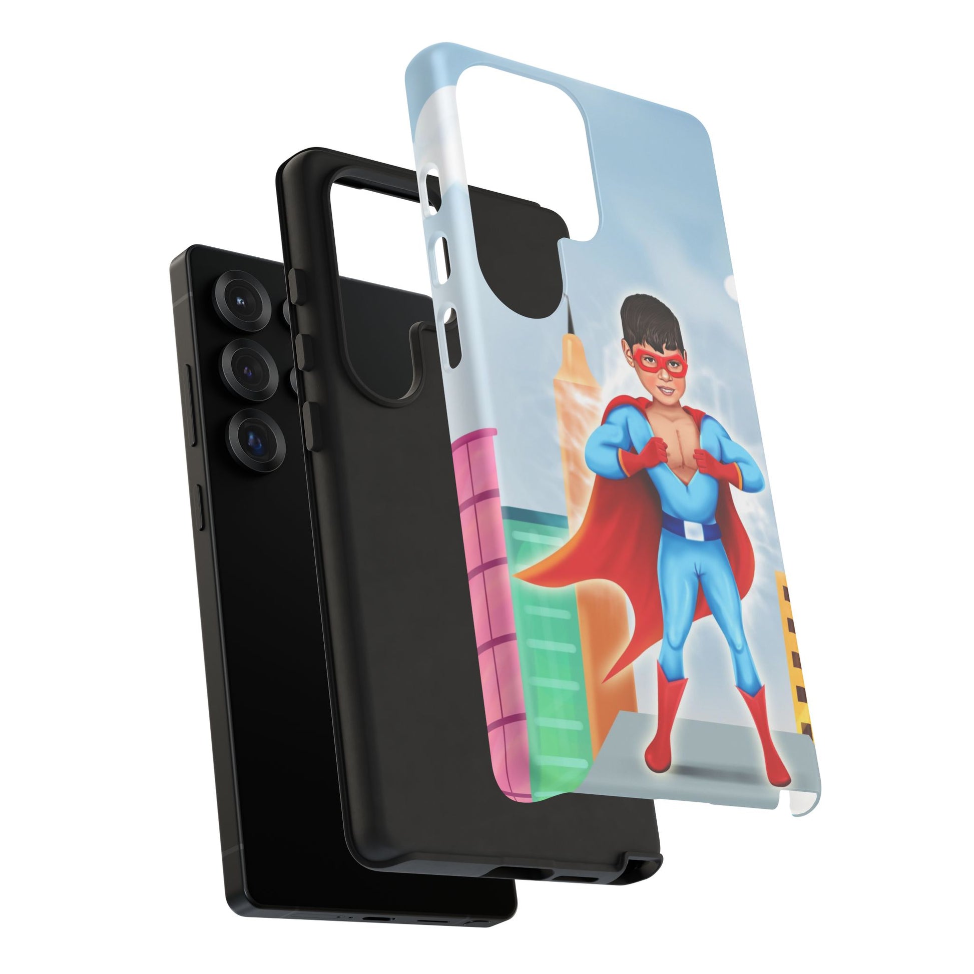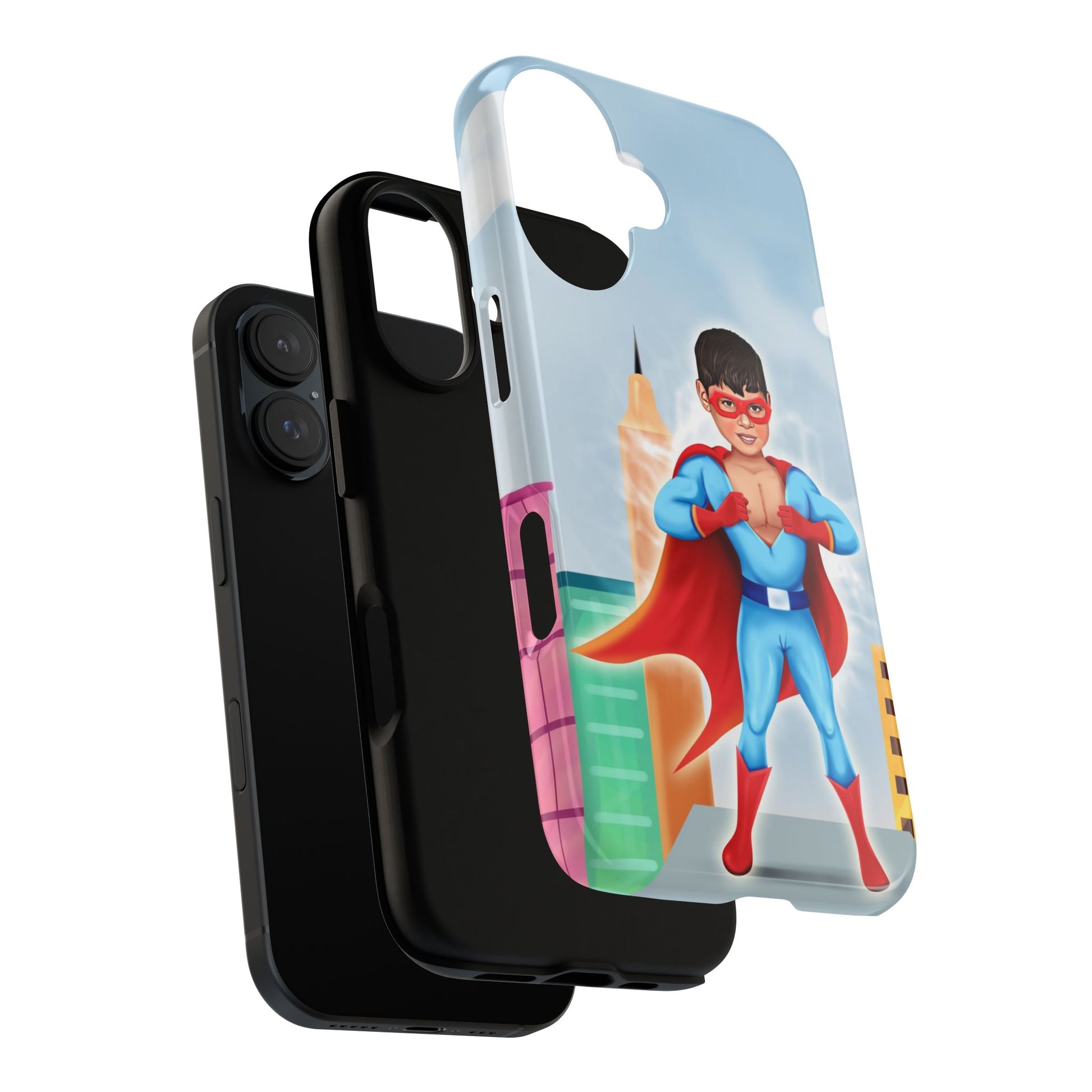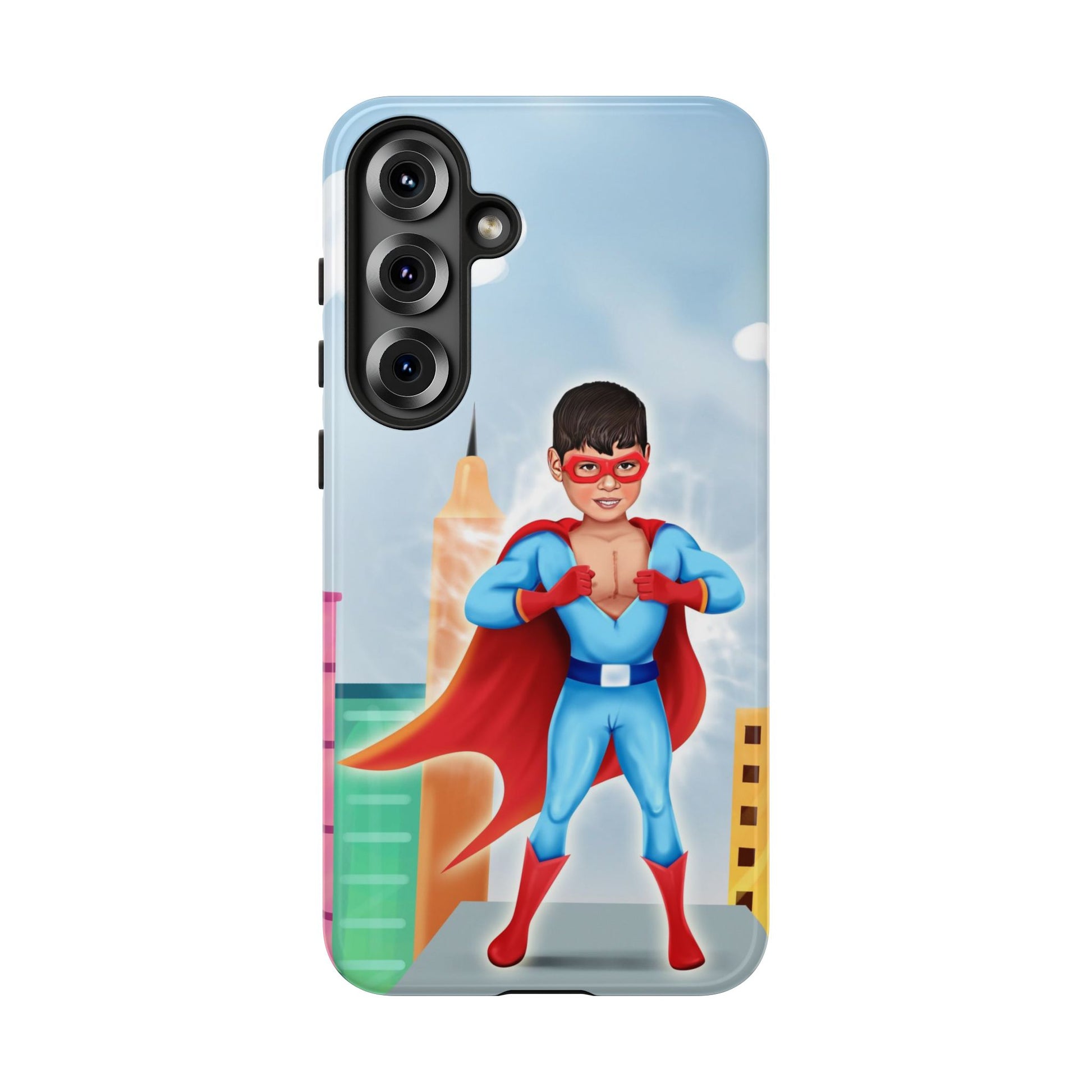 Introducing our superhero-themed phone case, designed to protect your device while adding a splash of fun and personality. This durable case brings a sense of adventure and imagination, perfect for individuals who appreciate unique, artistic designs. It's especially relevant for kids and parents looking for vibrant protective gear, making it an excellent gift for birthdays, holidays, or any celebration that calls for a touch of joy. Whether your child is a superhero fan or simply loves colorful designs, this case will keep their phone safe while sparking their creativity.